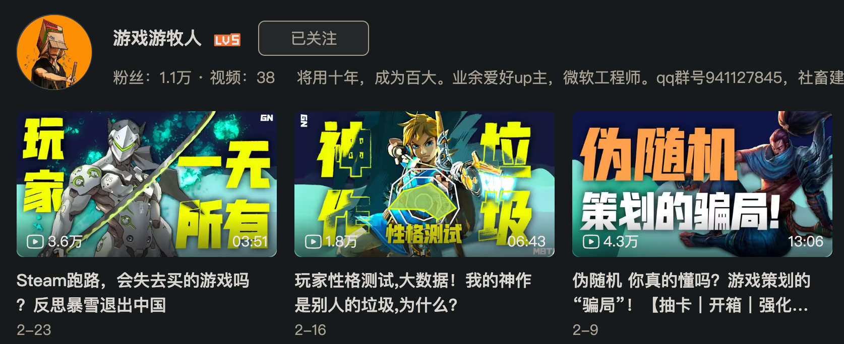 Recently I’m sharing game related knowledge and making Video Essays. I have got 11,000+ followers and 1886000+ video views until 2023.02.