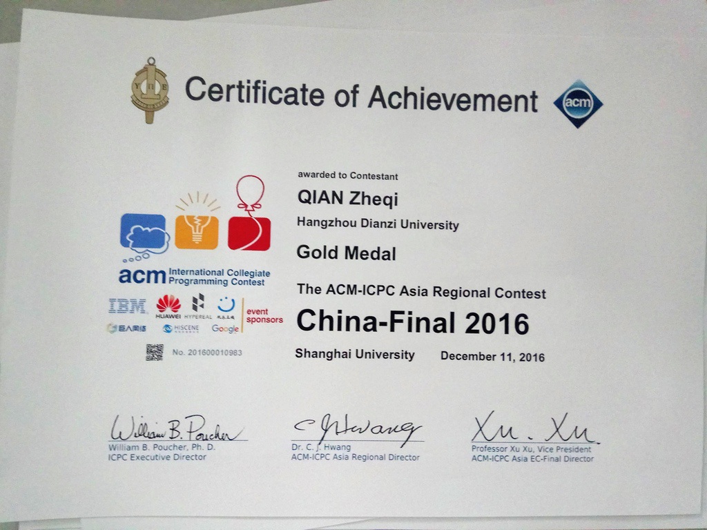 I trained for ACM ICPC (The International Collegiate Programming Contest) 1.5 years and practiced almost every day. I joined tons of competitions. And finally, I wined the Gold medal on ACM ICPC China-Final.