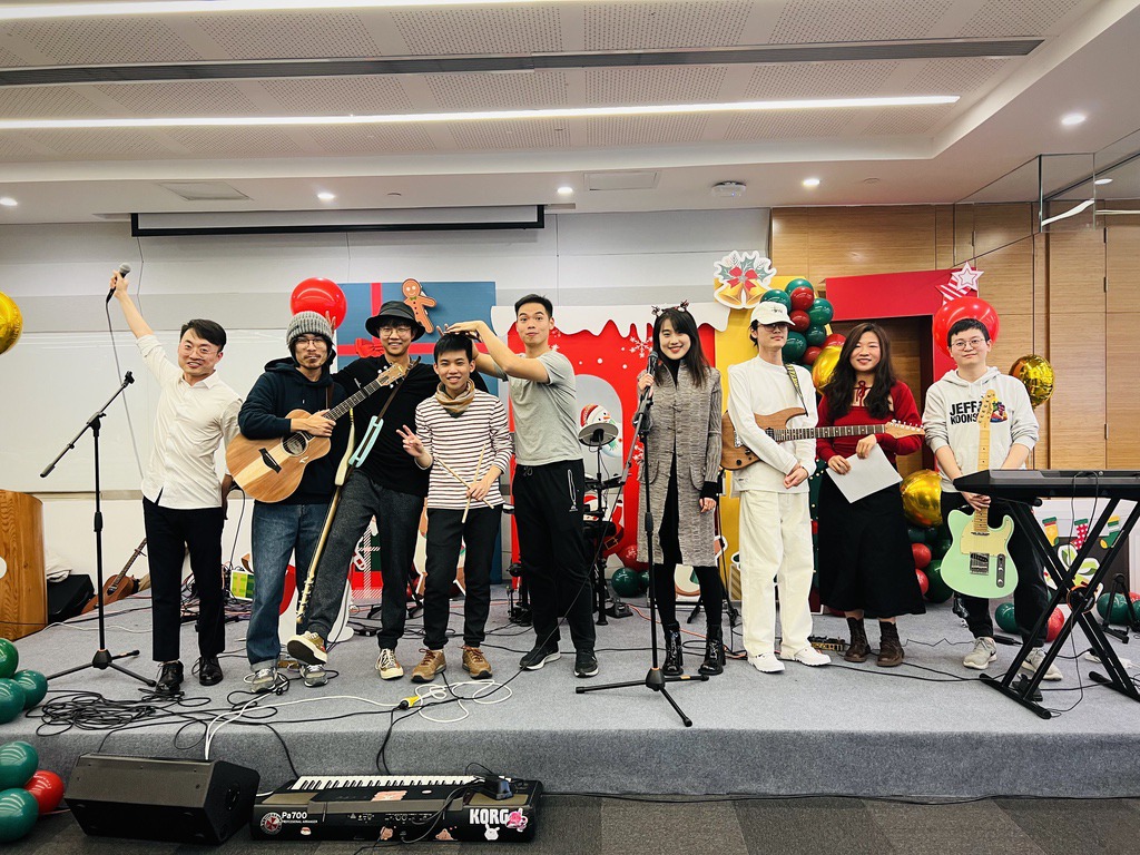 Our first public performance, and also my personal fist public performance is The Internationale (国际歌). It’s also my guitar teacher’s first band performance when he was young.